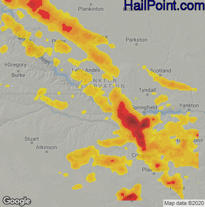 Hail Map for Grand Island, NE Region on October 12, 2023