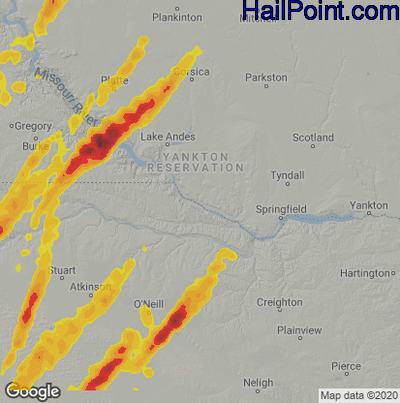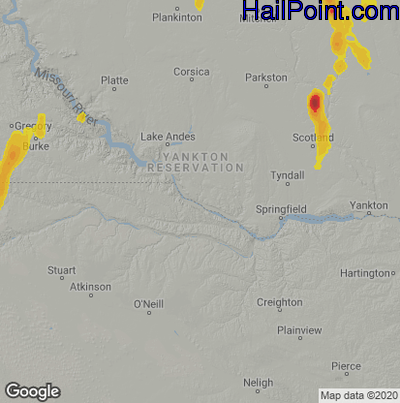 Hail Map for Grand Island, NE Region on July 28, 2023