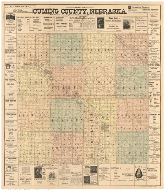 Buy Cuming County Nebraska 1900 Old Wall Map Reprint With Online
