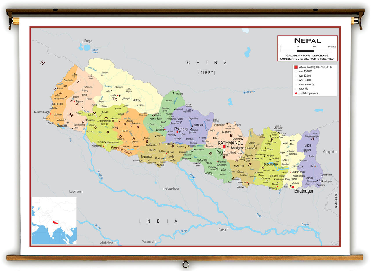 Nepal Political Educational Map from Academia Maps | World Maps Online