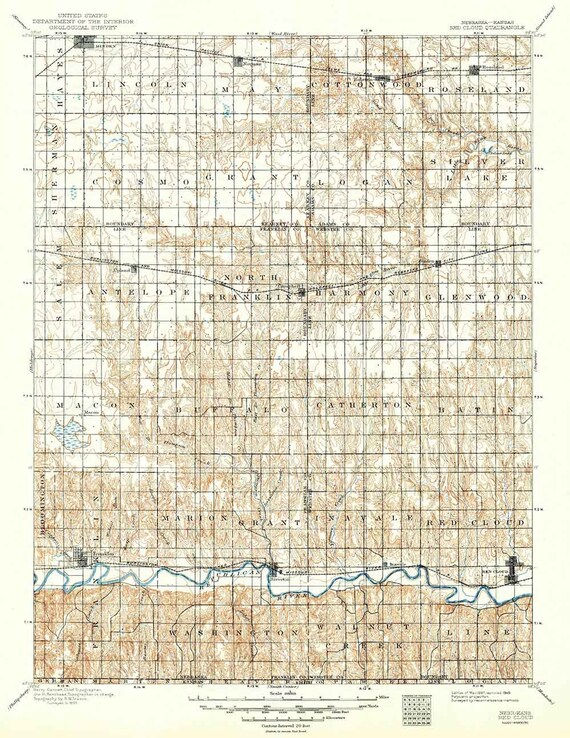 1897 Topo Map of Red Cloud Nebraska Etsy Australia