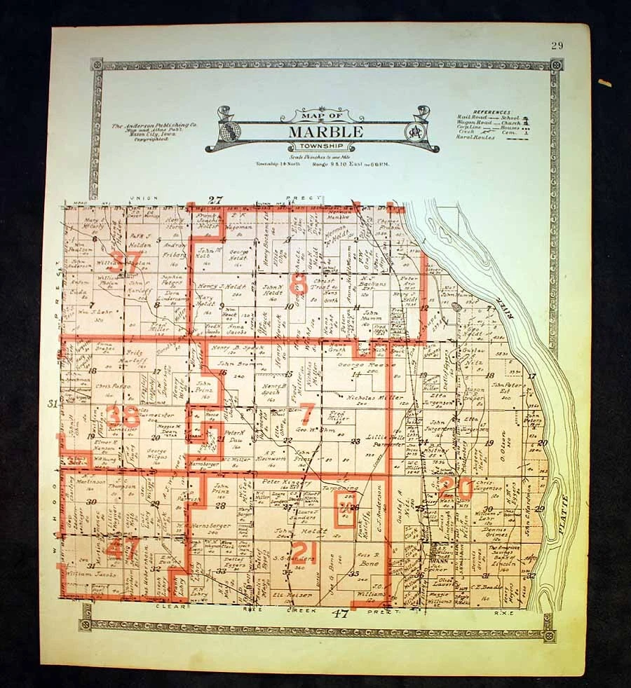 Marble Township 1918 Plat Map Saunders County Nebraska Platte