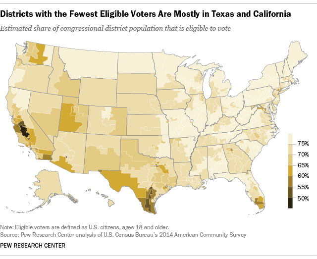 Districts with the Fewest Eligible Voters Are Mostly in Texas and